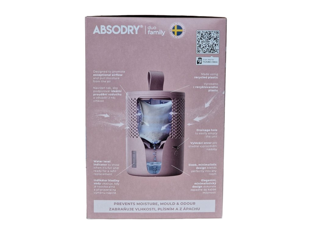 Absodry Duo Family je vyroben z recyklovaného plastu. Švédská společnost Everbrand je moderní firmou se silným enviromentálním přístupem k životnímu prostředí. A pokud zbavíte vaši domácnost vlhkosti a nepříjemných plísní, je to přesně ten stav, který si firma dala jako svůj cíl.