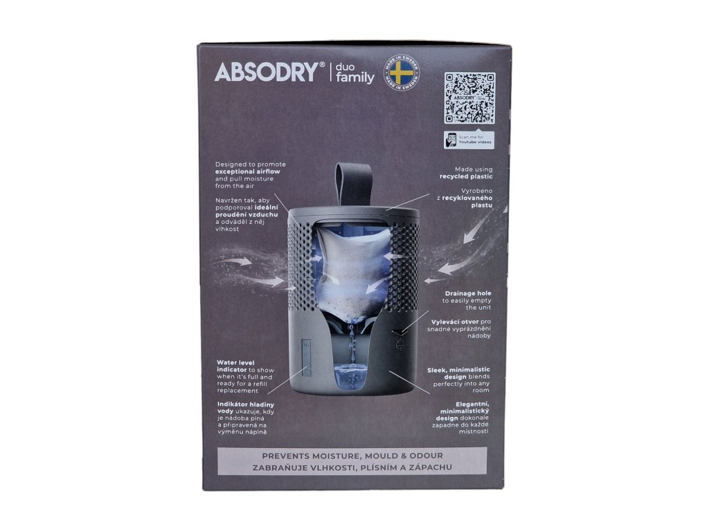Absodry Duo Family je vyroben z recyklovaného plastu. Švédská společnost Everbrand je moderní firmou se silným enviromentálním přístupem k životnímu prostředí. A pokud zbavíte vaši domácnost vlhkosti a nepříjemných plísní, je to přesně ten stav, který si firma dala jako svůj cíl.