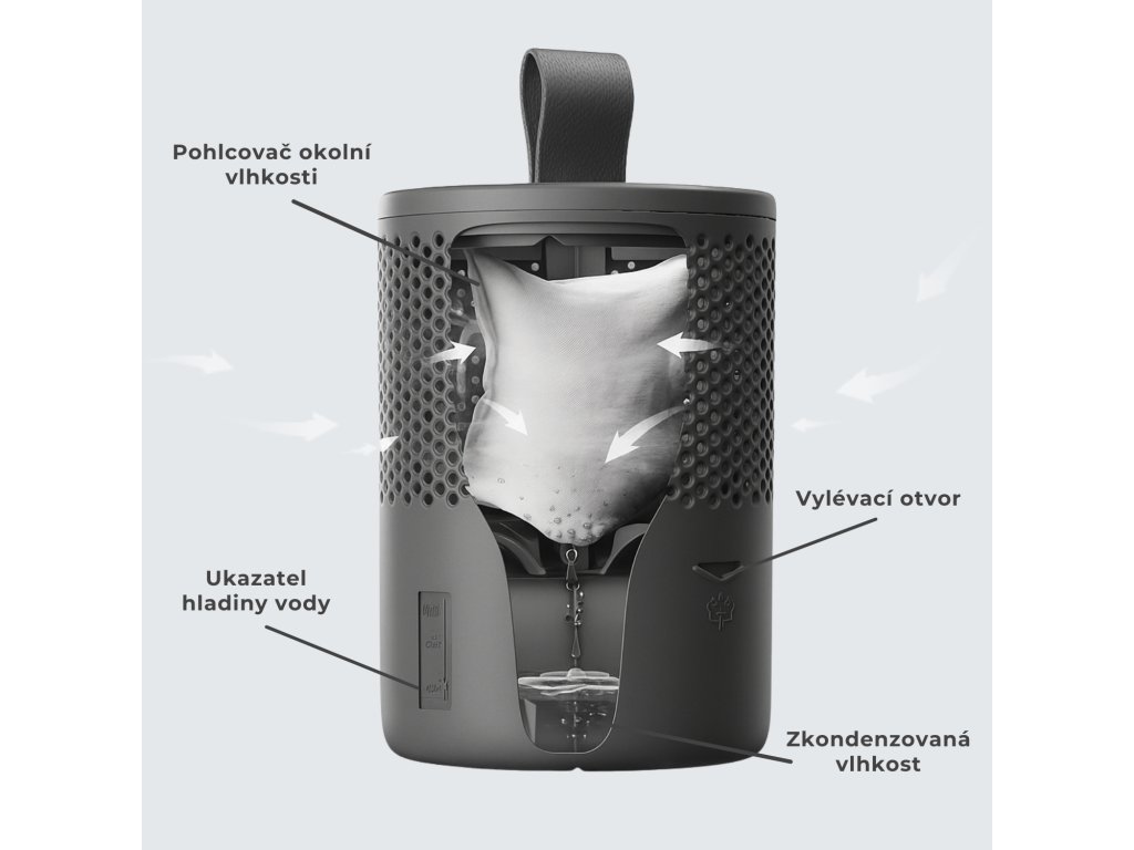 Snižte riziko vzniku plísní a nepříjemného zápachu s pohlcovačem vlhkosti Absodry ve tvaru nenápadného válce, jehož design je navržen tak, aby se hodil do každé moderní domácnosti. Funguje na principu pasivního provozu (bez el. energie), proto je naprosto tichý a vaším jediným úkolem je jednou za pár týdnů vylít nádržku s kondenzovanou vodou. Kompaktní rozměr umožňuje přemisťovat pohlcovač dle aktuální potřeby.