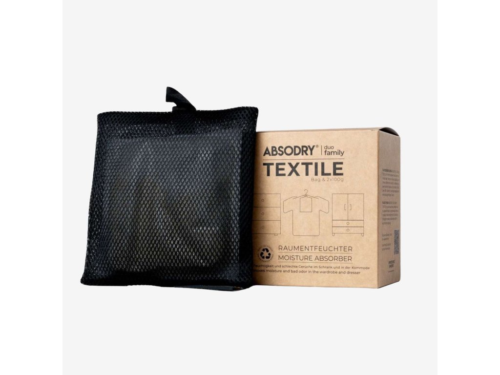Vysoušecí sáčky speciálně pro ochranu vašeho oblečení ve skříní nebo zásuvkách. Pohlcovač vlhkosti Absodry Duo Family Textile je malý textilní sáček, který stačí zavěsit na ramínko do šatníku, nebo umístit do zásuvky. Snadno se tak zbavíte přebytečné vlhkosti a ochráníte oblečení před vlhkostí, nepříjemným zápachem i šíření molů. Balení obsahuje 2 sáčky absorpčních krystalů, které přeměňují vlhkost vzduchu na vodu. Jedno balení vydrží 1 až 3 měsíce a poradí si s prostorem o velikosti zhruba 6 m2.